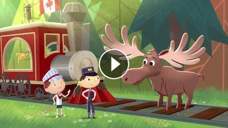 يقود "جاستن" قطارًا كنديًا بخاريًا للقيام بتسليم مهم. / يتم اختبار مهارات البناء لدى "جاستن" عندما يبني دائرة صخرية قديمة.