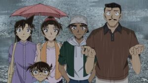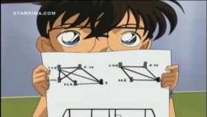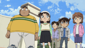 تبدأ القصة بظهور الشخصية الرئيسية سينشي كودو ذو السبعة عشر عامًا، وهو طالب في المدرسة الثانوية ومتحرٍ يساعد الشرطة والمفتش ميغوري في حل بعض القضايا، مشهور بذكائه وعبقريته التي تُفاجئ الجميع باستنتاجات تخالف التوقعات. وفي يوم من أيام العطلة خرج مع صديقة طفولته ران موري إلى مدينة الملاهي، وحدثت جريمة قتل داخل الأفعوانية وحلها كالعادة بذكائه ومهارته، وبينما كانوا هناك لمح سينشي كودو رجلًا ذو ملابس سوداء يقوم بعملية ابتزاز. فأراد معرفة القصة، فما لبث إلا أن ضُرب من الخلف وسقط مغشيًا عليه، ومن ثم أُجبر على تناول عقار جديد، لم يستخدم من قبل إلا على الفئران وظن الرجل ذو اللباس الأسود أنه سيقتله ولن يترك فيه أثرًا للتسمم لكن العقار السام تسبب في تقلص جسده ليصبح فتًى في السابعة من عمره. تلك الحادثة التي وقعت في مدينة الملاهي تسببت بولادة بطل المسلسل كونان إيدوجاوا وتغير حياة سينشي كودو.