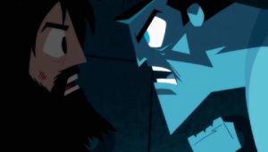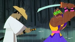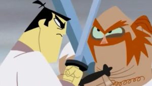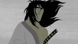 مع سيف والده السحري كاتانا، تحدي أكو إلى مبارزة ليهزم الشرير, ومع ذلك قبل أن يتمكن جاك من ضربة الضربة القاتلة قام أكو بإنشاء بوابة الزمن ويرسل خصمه في المستقبل البعيد، وتوقع أنه سيكون قادرا على حشد قوة كافية للتعامل مع السامرائي في وقت لاحق.