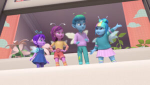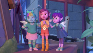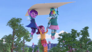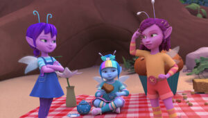 يوميات جنّيات الندى : تستمتع ثلاث جنيات تحت التدريب بالاهتمام بالأطفال الذين في رعايتهن، بدءًا من البحث عن أغراضهم المفقودة ووصولًا لترتيب الفوضى التي يحدثونها، بينما يحاولن تعلّم الطيران.