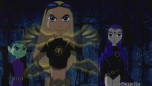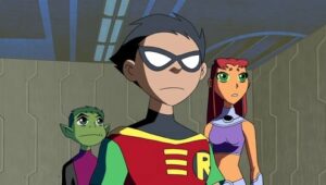 مراهقو التايتنز : تدور القصة عن خمسة من الابطال المراهقون الذين هدفهم حماية الارض من الاعداء وهنا يتميز كل واحد عنهم بقدرات خاصة وصفات ومواهب, ومن الجميل انه في المسلسل يتعرفوا على شخصيات اخرى يساعدونهم. يسكن الابطال ببرجهم الذي على شكل حرف T وهو اختصار لاسم فريقهم, ثانيا الشخصيات لكن مراهقوا التايتنز ليست فقط قتال واعداء بل هم اصدقاء ويحبون اللعاب الفيديو.